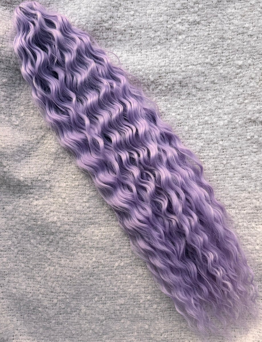 Korkealaatuinen ja pehmeä laineikas hiuskuitu. Taitettu pituus kiharrettunna 55cm (55+55). Voidaan käyttää kampauksissa tai kokopään pidennyksissä. Yhden paketin paino noin 100g (kuvassa 3pakettia)